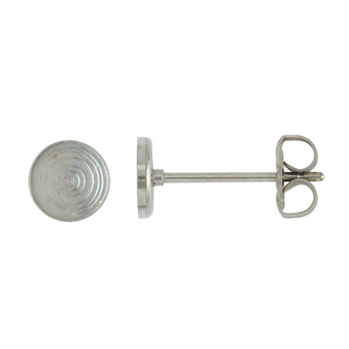 This titanium post earring bezel cup mounting holds one 6mm cabochon. Crafted with grade-23 titanium, the earring is 100% hypoallergenic, ideal for customers with metal sensitivities. Add a drop or two of jeweler's epoxy to the mounting, then insert your cabochon or flat-backed stone to complete your design.