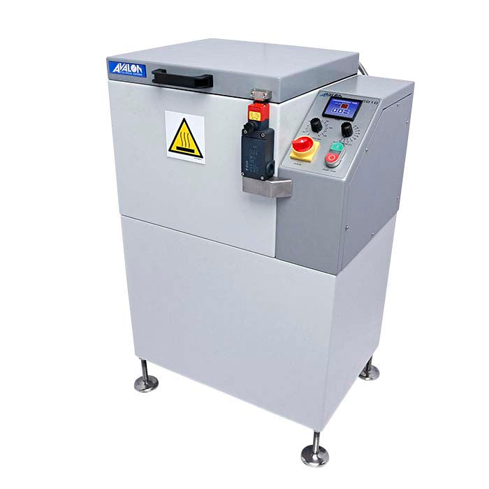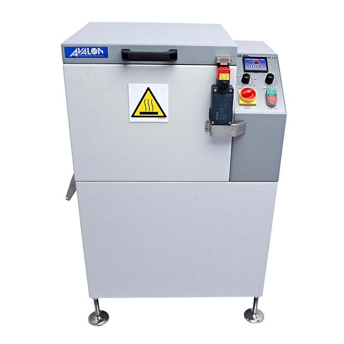 Ιδανικό για κάθε πολυάσχολο περιβάλλον υψηλής παραγωγής, αυτό το CD-10 στεγνωτήριο εξαρτημάτων από Avalon στεγνώνει αποτελεσματικά τα υγρά τελειωμένα τεμάχια χρησιμοποιώντας συνδυασμό ζεστού αέρα και φυγόκεντρης δύναμης. Το περιστρεφόμενο καλάθι εξωθεί το νερό από τα τεμάχια ενώ ο θερμαινόμενος αέρας βοηθά στην ταχεία εξάτμιση του νερού, αποτρέποντας το σχηματισμό υδατοσημάτων στις επιφάνειες των κοσμημάτων. Το φυγόκεντρο στεγνωτήριο Avalon διαθέτει εύχρηστο πίνακα ελέγχου με χρονοδιακόπτη και ρυθμίσεις ταχύτητας και θερμοκρασίας που παρέχουν προσαρμόσιμες ρυθμίσεις για να σας βοηθήσουν να στεγνώσετε με ασφάλεια και γρήγορα ευαίσθητα κομμάτια μετά από μεγάλες παραγωγικές διαδικασίες φινιρίσματος. Ο χρόνος επεξεργασίας είναι ρυθμιζόμενος από 1 έως 60 λεπτά, η ταχύτητα ρυθμίζεται από 700 έως 1.150 στροφές/λεπτό και η θερμοκρασία ρυθμίζεται από 95° έως 176°F (35°–80°C) για να καλύψει τις ανάγκες φινιρίσματος της συγκεκριμένης παραγωγής σας. Ένας ηλεκτρομαγνητικός διακόπτης ασφαλείας κρατά το καπάκι κλειστό με ασφάλεια ενώ η μονάδα λειτουργεί.