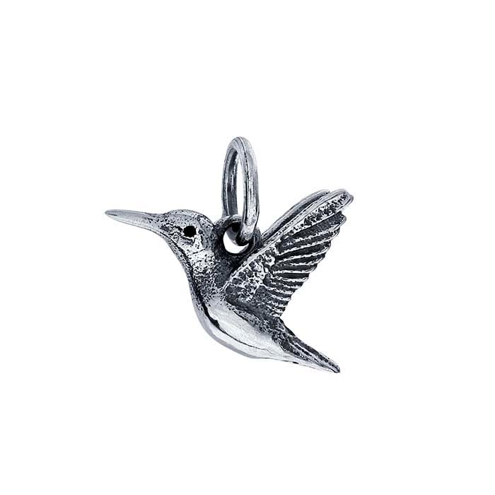 Αυτό το μικρό μενταγιόν κολιμπρί από ασήμι sterling διαθέτει λεπτομερή τρισδιάστατο σχέδιο, οξειδωμένο για να αναδεικνύει τις λεπτομέρειες—από τα ξεχωριστά ορισμένα φτερά σε δύο μικρά φτερά έως το μακρύ λεπτό ράμφος. Το μενταγιόν είναι ιδανικό για σύγχρονα σχέδια κοσμημάτων· χρησιμοποιήστε το ως προσθήκη σε βραχιόλια με μενταγιόν, ως στοιχείο σε θεματικό σχέδιο ή ως κρεμαστό για σκουλαρίκι. Αυτό το μενταγιόν περιλαμβάνει κλειστό δαχτυλίδι.