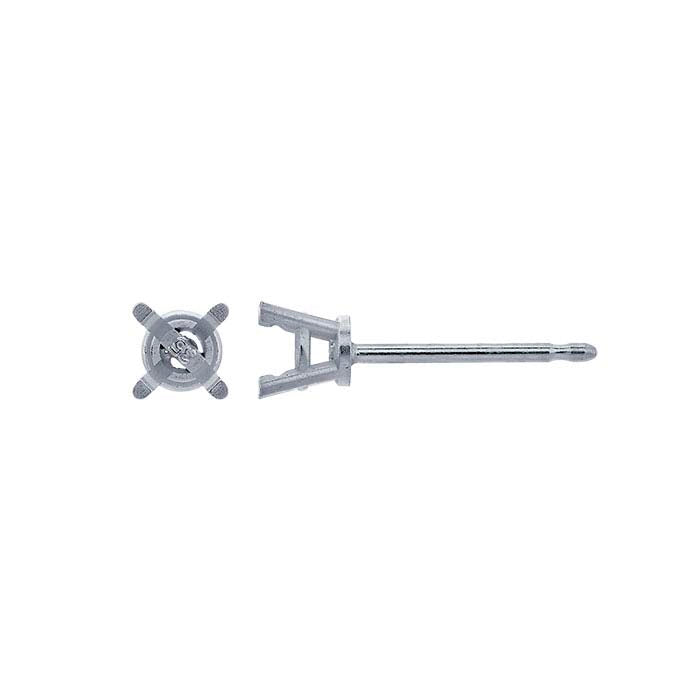 14K White Gold 3.5mm Round Pre-Notched Tapered Basket Post Earring Mounting