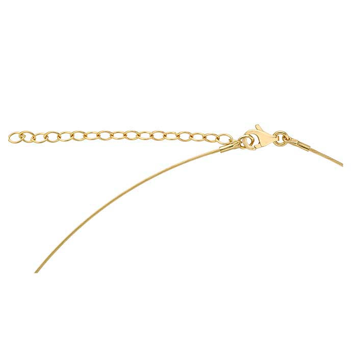 This 14-karat yellow gold single-strand, 0.6mm cable wire necklace can be offered alone or finished with a pendant or other design component. The neck wire has a 14-karat yellow gold 2" extender made from cable chain.