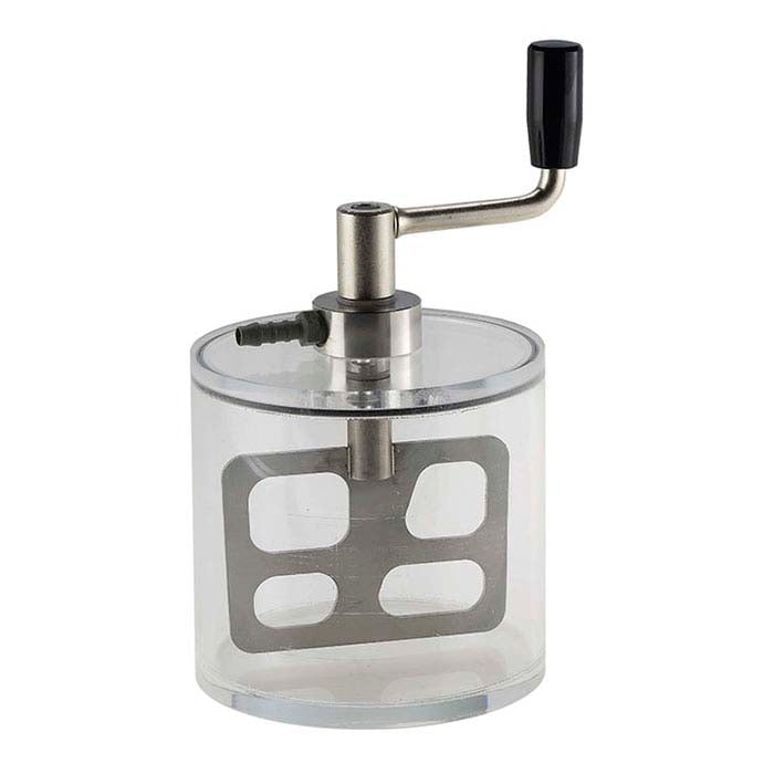 This manually powered mixing chamber holds the ideal amount of investment for the CAST/T centrifugal casting machine. Add the investment powder and water to the mixing chamber, set the airtight lid/paddle assembly in place, and turn the handle smoothly and firmly to thoroughly mix the exact quantity of investment you need. For greater quality, attach the optional CAST/T WaterJet™ vacuum pump system (shown below) to the valve at the top of the chamber.
