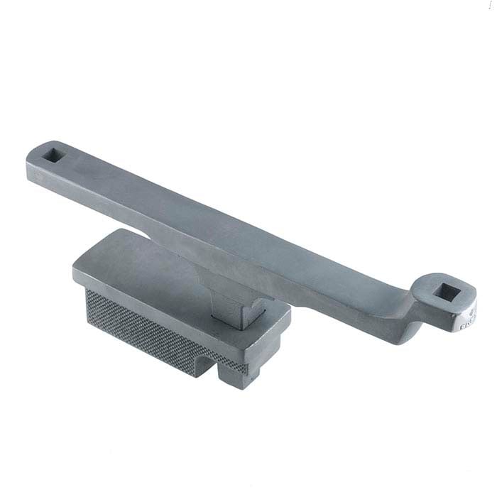 Designed specially to be secured in a bench vise, this Fretz® stake holder holds Fretz forming stakes (H-100 series) or the Fretz double-ended stake holder (T-101) securely while in use. Its tang is textured to ensure a sturdy motionless position while you work. Hole is 17mm square.