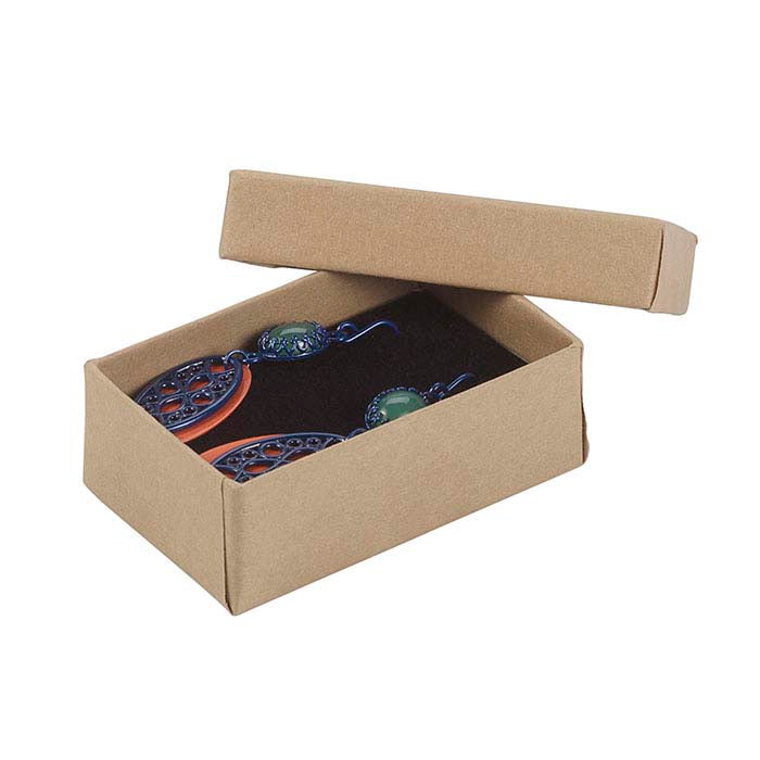 **NOTE: Our vendor recently changed the paper on this box and the new paper is somewhat darker that what is shown. While the stock is changing over, the boxes you receive may have the lighter or the darker paper or may be a mix of the two.**This paper-covered combination box accommodates a charm and/or pair of earrings, making it ideal for coordinated sets, making it ideal for coordinated sets. Add a decorative ribbon, gift wrapping or bow (available separately) to customize the box. Kraft paper covers the 100% recycled cardboard box (made with 90% post-consumer fiber and 10% pre-consumer fiber); includes a black flocked cardboard insert.Hot stamp your gift box with your company name or logo, keeping you top-of-mind long after the jewelry sale.