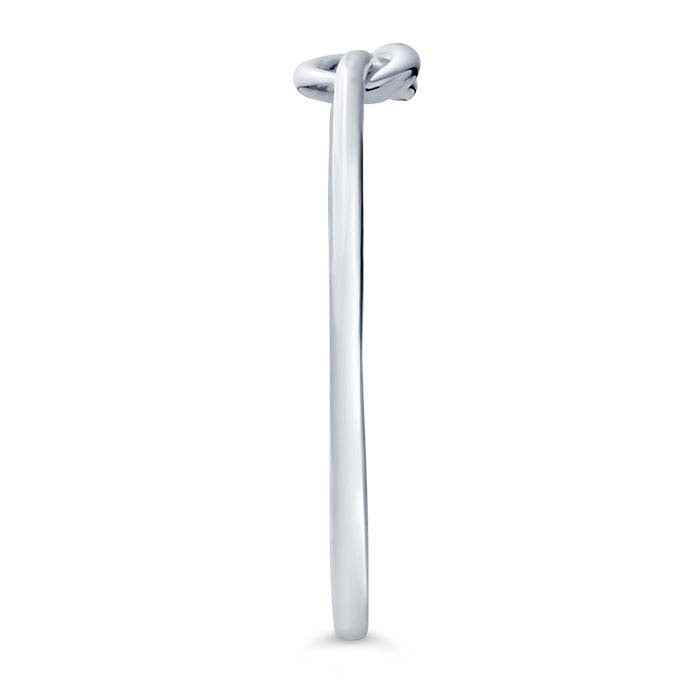 This sterling silver ring features simple styling and a love knot design. The ring stands alone as a simple accent piece and is also ideal offered among a wide selection of stackable rings that customers can choose from to create an individual, changeable look.