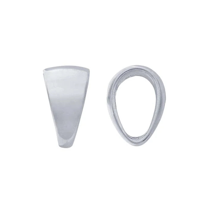 This sterling silver narrow tapered bail features a smooth bright finish and clean styling that looks great with any pendant style. Designed to be soldered onto a pendant, this bail tapers from the opening at the top down to a point where it is attached to a pendant.