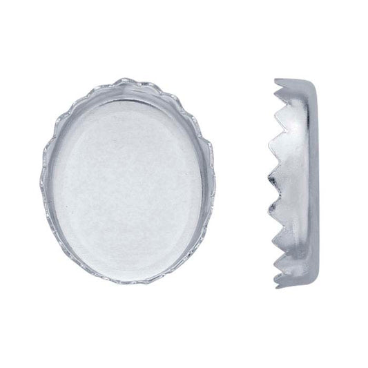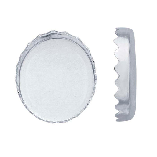 Sterling Silver 12 x 10mm Oval Serrated-Edge Bezel Cup Setting