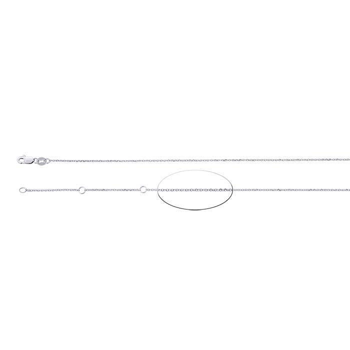 14K White Gold 0.9mm Beveled Oval Cable Chain, Adjustable