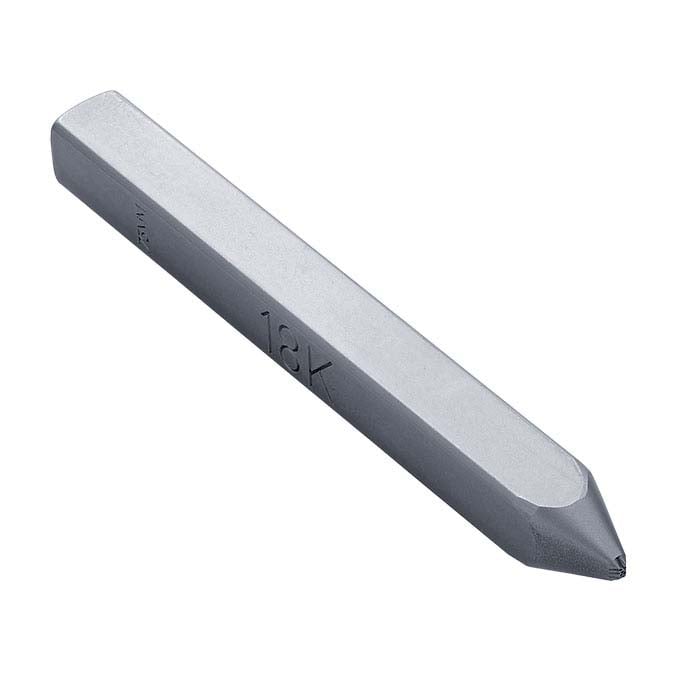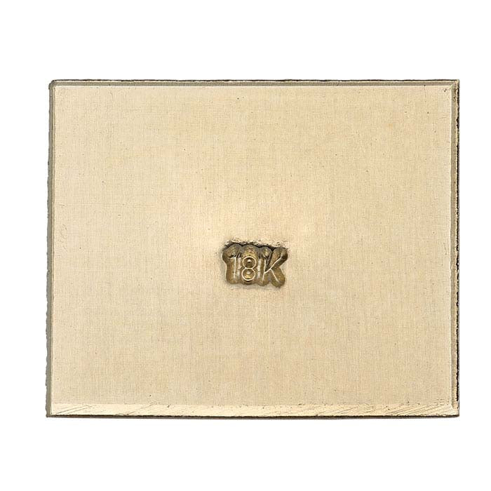 This straight marking stamp reads "18K"; ideal for quality-marking designs made with 18-karat gold. The stamp is precision-engraved from 5/16" tool steel oil-hardened to 58/62 HRC, delivering crisp, detailed surfaces and a long service life. Stamps with a straight shank have a flat tip face that's perpendicular to the tool shank. These stamps are perfect for marking flat surfaces such as quality or brand tags, discs, stampings and other components. For best results—and because any stamped mark is not easy to remove once it's made—it's important to practice before attempting to mark your jewelry designs. Scrap pieces of sheet or base metal ring blanks are ideal for helping you get the feel of both the stamp and the power needed for an effective hammer strike. Use a brass mallet to strike the stamp to help prevent damage to your stamp, and support your workpiece on a bench block or an anvil. Finally, do your stamping before setting stones so that there is no risk of damaging settings or loosening set stones.