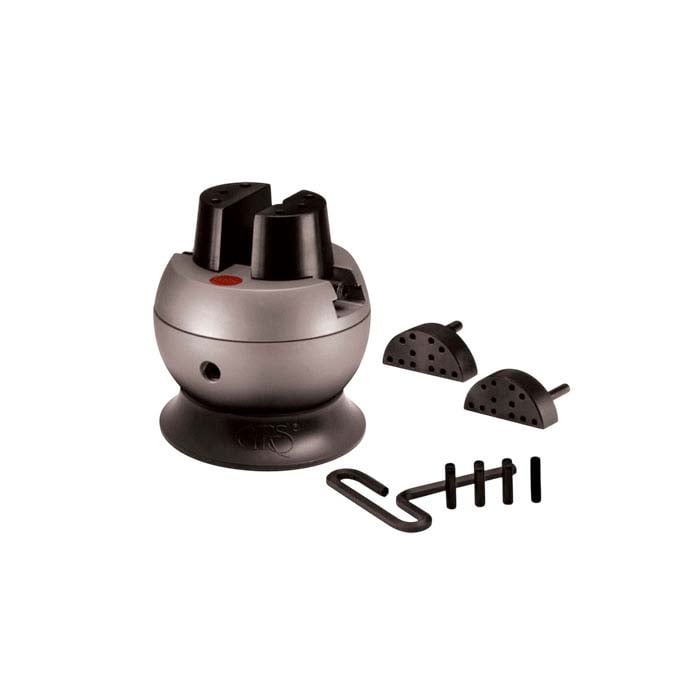 Great for your detailed engraving and stone setting tasks, the 20.9 lb. GRS® standard engraving block allows you to access your work from almost any angle. A ball and roller system ensures smooth rotation and prevents internal wear. The adjustable rotational brake allows the ball to rotate freely for positioning or be secured in place while you work. The crown and base are machined from solid stainless steel and finished with a special low-glare treatment to reduce eye strain. Block includes upper jaw plates, four pins, base, and a wrench. Microscopic Work The standard engraving block is ideal for exacting tasks with the aid of a microscope. The vise configuration allows quick and easy positioning adjustment of your piece without changing the alignment of the microscope or its field of view. You can even adjust it without taking your eyes from the microscope.