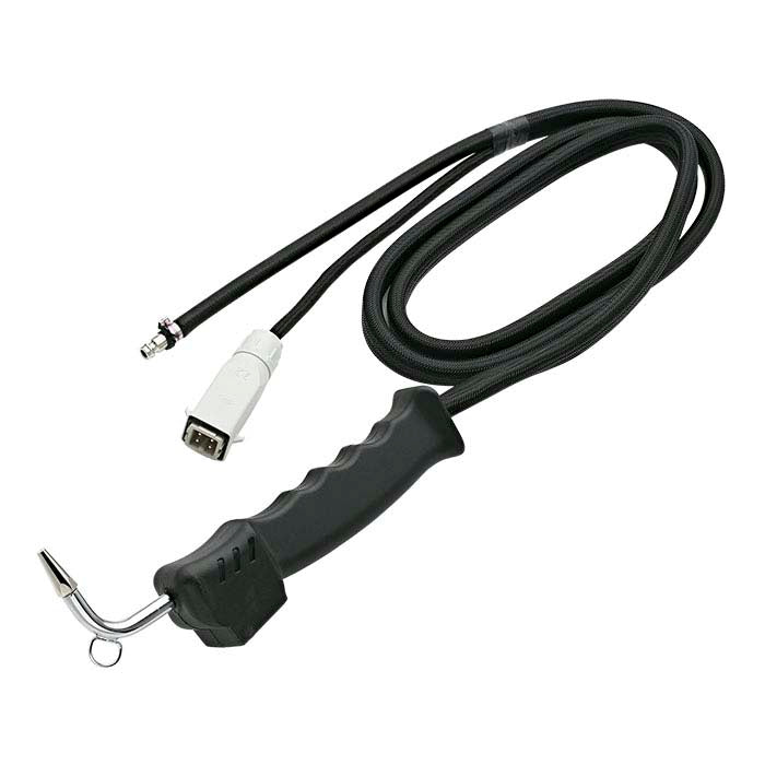 This handy spray handpiece attachment allows you to control the flow and direction of pressurized steam almost infinitely, aiming the steam in any direction and activating the flow with the touch of your thumb. A dual rubber hose is covered in heat-resistant nylon braiding and gives you more than 5-1/2 feet of reach to access your workpiece from any direction. Plug the ends into the pressure outlet and the steam outlet, respectively, to replace the foot pedal control, and you're ready to clean. The handpiece is compatible with both the 5000CJ & 6000CJ models.