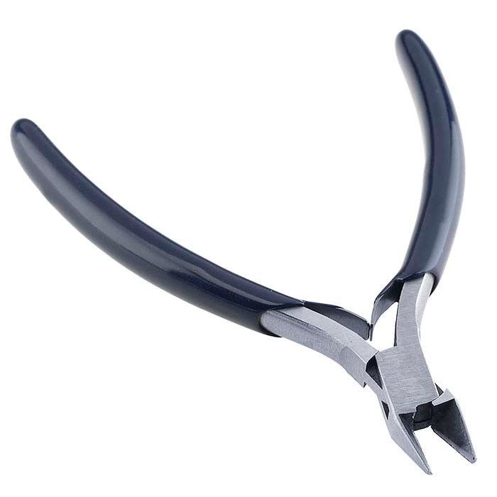 These small, compact bevel cutters feature tapered jaws ideal for cutting prongs and fine wire; they fit comfortably into the palm of your hand. The most durable of cutters, bevel cutters require more pressure to make the cut; they have a distinct V-notch on the back surface and leave a pronounced pinch at the ends of the material.