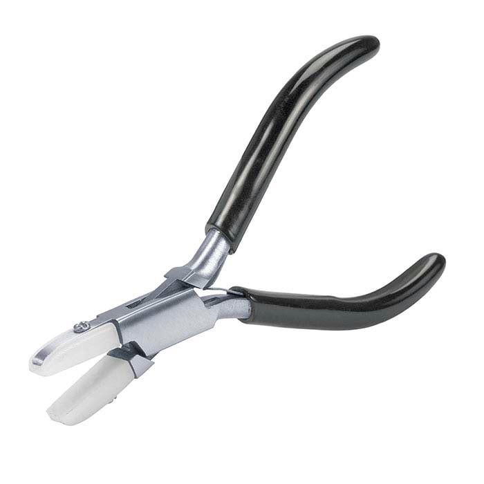 These flat-nose pliers feature nylon-lined jaws that shape metal and wire without marring and can be filed or shaped to suit specific applications. The slim shape and smaller size makes this tool ideal for delicate tasks. On flat-nose pliers, both jaws are flat; the nylon lining is ideal for shaping and flattening even soft metal sheet, wire and components.