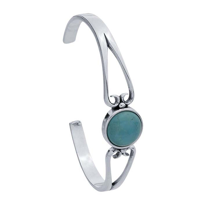 This sterling silver cuff bracelet mounting is oxidized and features split, openwork sides with loop details and a 12mm round bezel mounting, ideal for finishing with your customer’s choice of cabochon. Complete the cuff by setting a cabochon in the mounting using traditional bezel-setting techniques, or use jeweler’s epoxy to secure the stones.