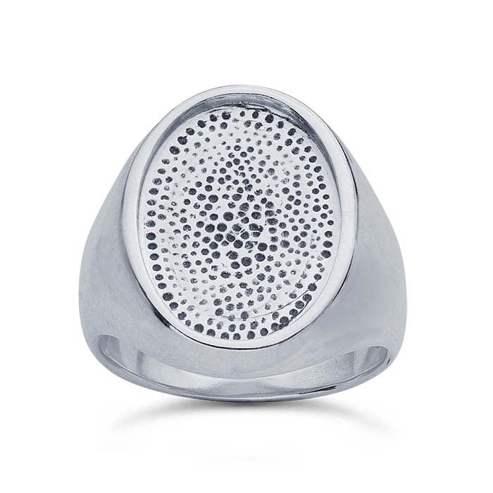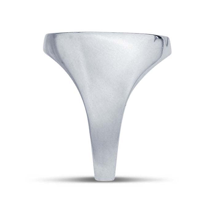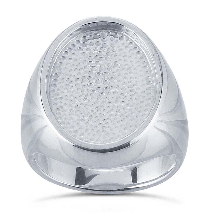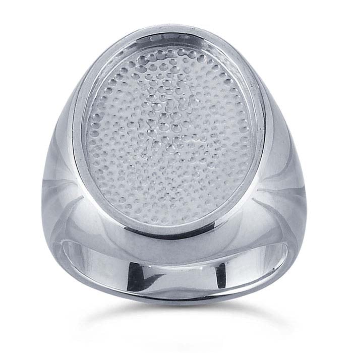 This sterling silver ring mounting holds one 18 x 13mm oval cabochon or other flat-back stone or crystal. Its smooth band is tapered, making it comfortable to wear. Use jeweler's epoxy to secure the stone in the mounting.