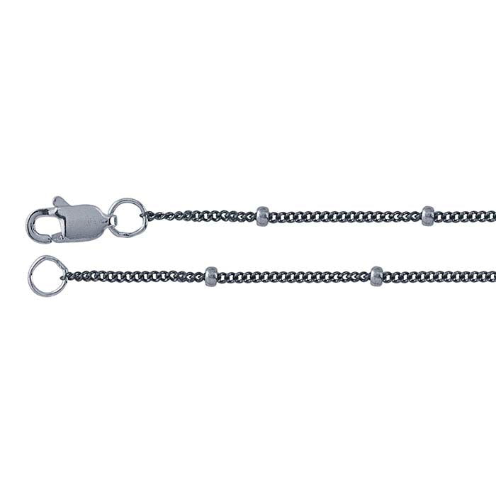 Sterling Silver Black Oxidized 1mm Curb Chain with 1.9mm Bright-Finished Roundel Bead Accents