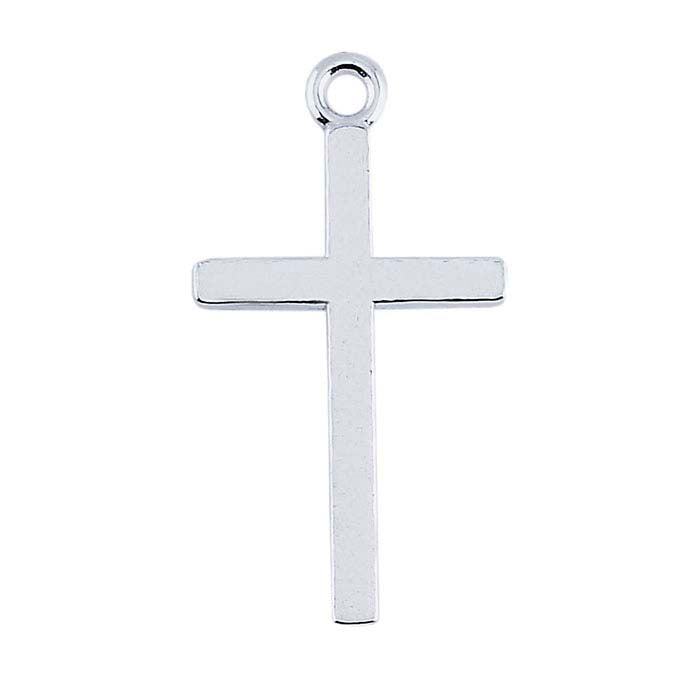 This sterling silver pendant features a classic, solid cross and a smooth, unadorned finish. To complete the pendant, attach a bail, and use it as a pendant on a cord or chain, or combine it with other components in a more complex necklace or bracelet design.