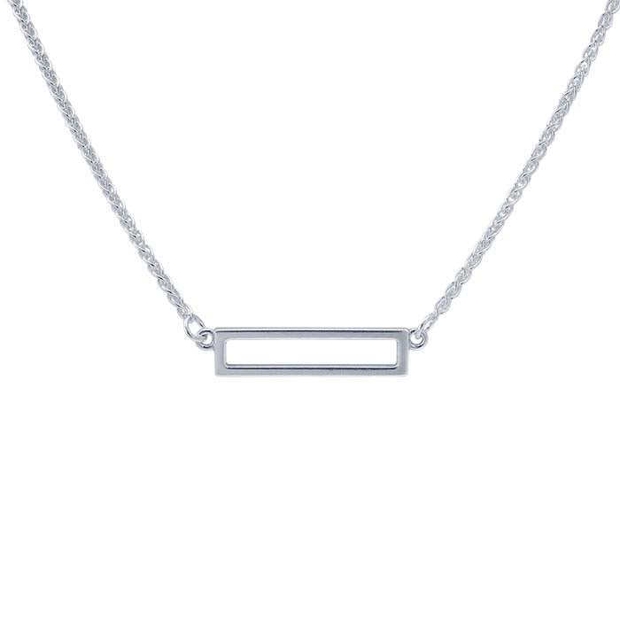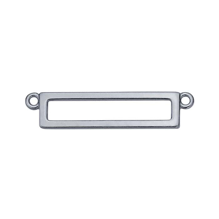 This sterling silver rectangle festoon pendant makes a great addition to geometric designs for necklaces, bracelets or anklets. Use it as a pendant and attach further elements through the rectangular opening, or open up your design possibilities by using the open slot to capture strips of leather or fiber. Two rings fixed in place on the top edge of the rectangle gives the piece stability and convenient attachment points.
