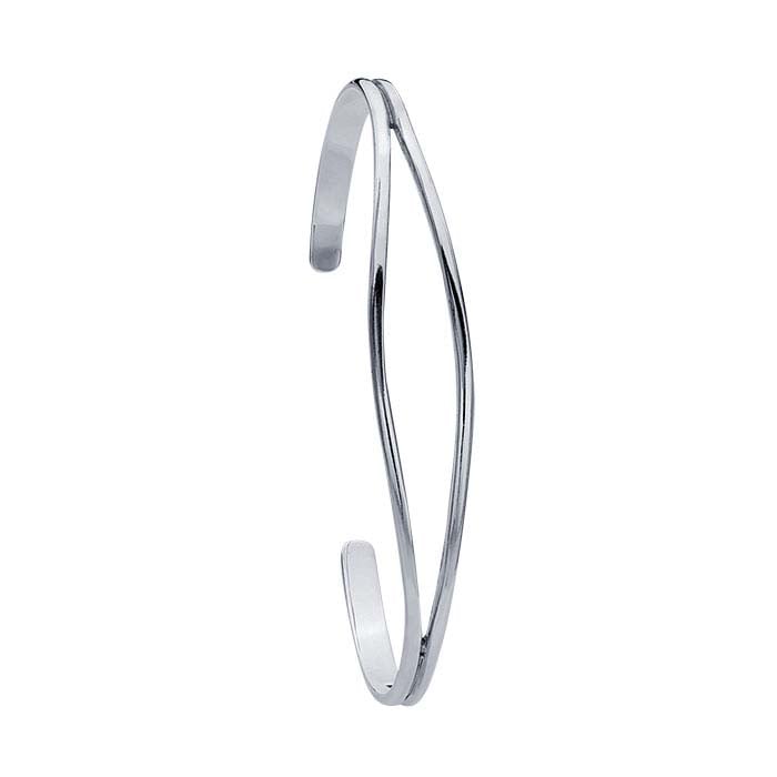This sterling silver cuff bracelet features the look of half-round wire and is shaped to create a curved split center. Offer it as-is, solder bezels into the split, or add other styles of findings to create a custom design.