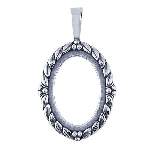 Sterling Silver 25 x 18mm Oval Leaf Cabochon Pendant Mounting