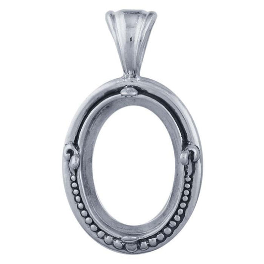 Sterling Silver 18 x 13mm Beaded Oval Cabochon Pendant Mounting