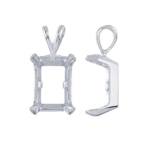 Sterling Silver 8 x 6mm Emerald-Cut ReadySet™ Pendant Mounting