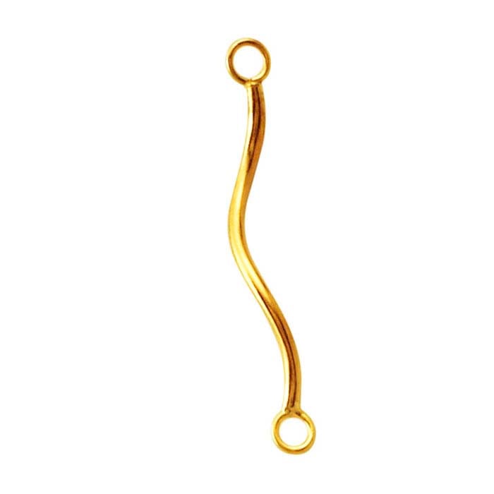 This 14/20 yellow gold-filled link component features a curved spiral shape and is a versatile element to add to your designs. Link multiple components together with jump rings to create a chain, or connect a variety of drops and dangles in a more complex necklace or bracelet design. It is ideal for drops and dangles made with gemstone beads or charms. This component is plated with 14-karat yellow gold to ensure a uniform color.