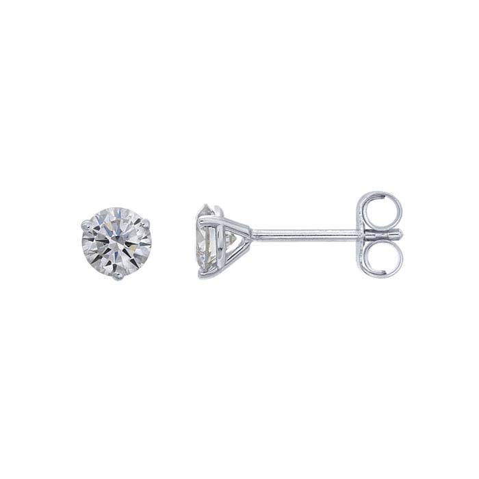 These finished 14-karat white gold earrings are set with one lab grown 1/4-ct. round white diamond (VS2–SI1 clarity/H,I color; 1/2-CTTW) in a three prong setting. The friction post features a groove that helps provide the most secure and comfortable fit; ear nuts are included.