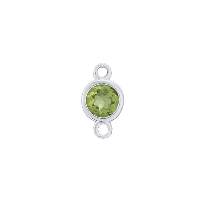 This 14-karat white gold link component is bezel-set with a round faceted 3.5mm peridot, the birthstone for August. Use jump rings to link multiple components together to create a chain, or connect a variety of drops and dangles in more complex necklace, bracelet or earring designs.