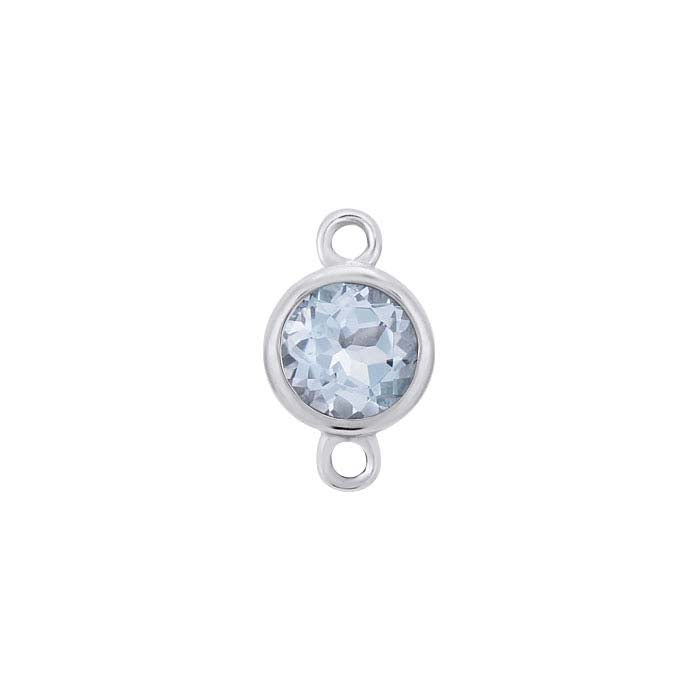 This 14-karat white gold link component is bezel-set with a round faceted 4mm aquamarine, the birthstone for March. Use jump rings to link multiple components together to create a chain, or connect a variety of drops and dangles in more complex necklace, bracelet or earring designs.