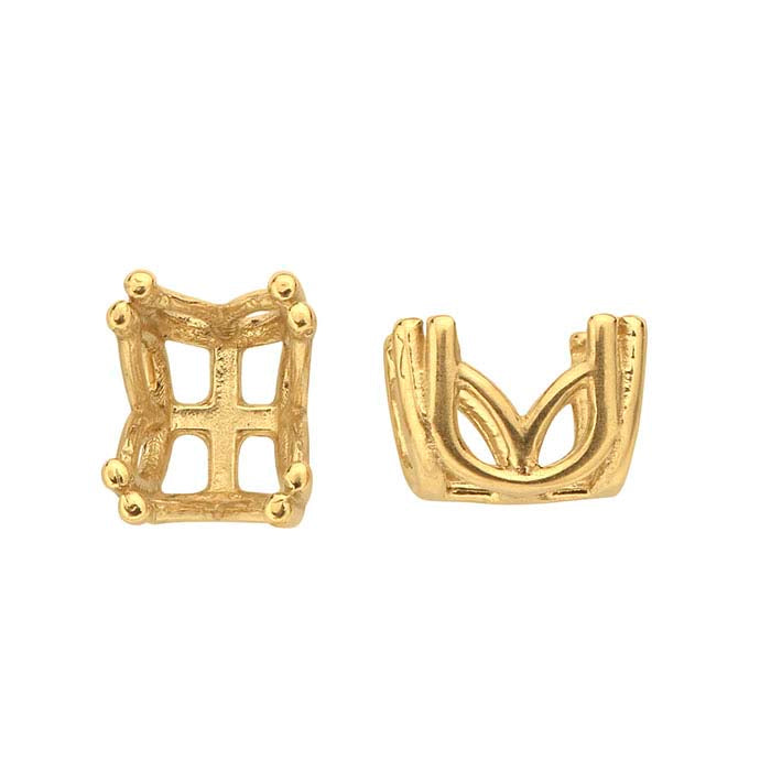 This 14-karat yellow gold setting features an attractive open style and holds one 6 x 4mm oval faceted gemstone. A variation on a classic 4-prong setting, which supports the gemstone on four sides, this setting has double prongs that create eight contact points for added security.