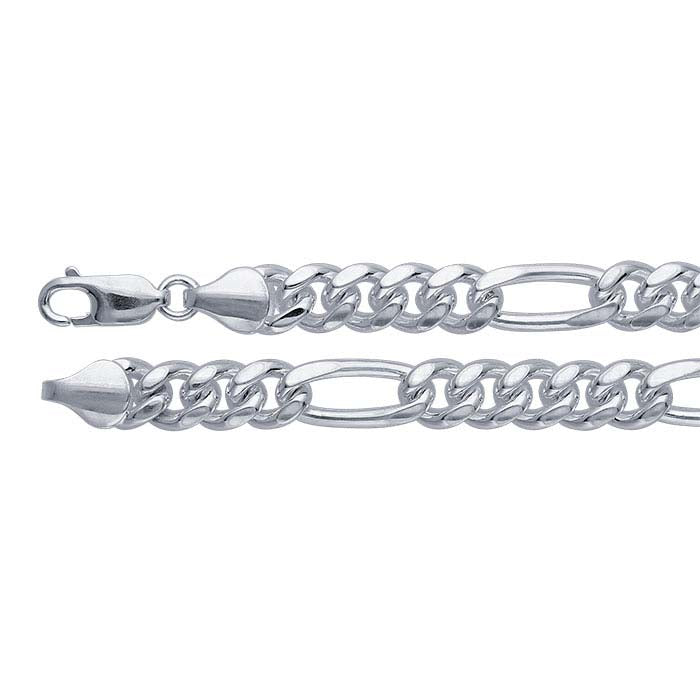 Sterling Silver 7.3mm Diamond-Cut Figaro Chain