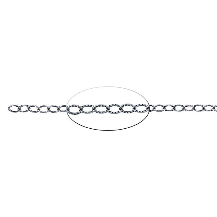 Sterling Silver Oxidized 2.7mm Patterned Flat Oval Cable Chain, 3.05 m. Spool