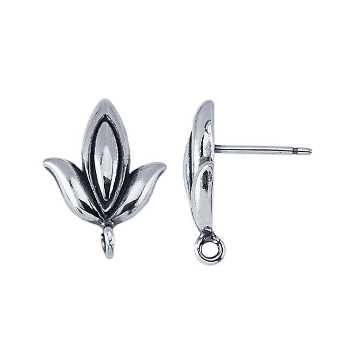 This sterling silver post earring features a domed-petal tulip design with a channel accent and is oxidized to highlight its detail. The open ring makes it easy to attach drops or dangles to complete your design. The friction post features a groove that helps provide the most secure and comfortable fit; post earrings require an ear nut to keep the post in place.