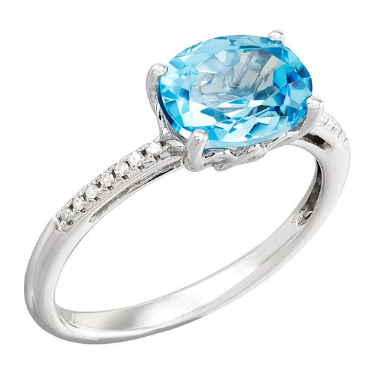 10K White Gold Swiss Blue Topaz- & Diamond-Set Ring