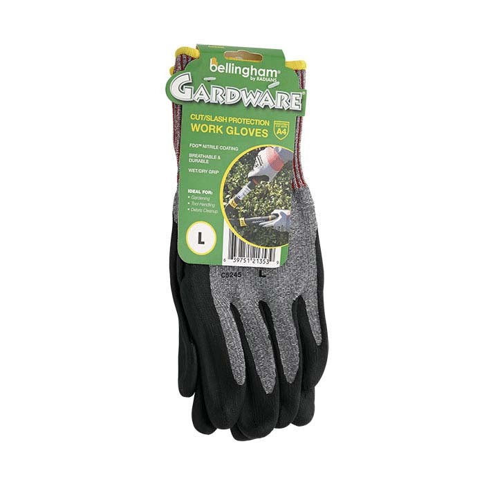 Keep your hands and fingers safe when cutting glass or handling metal with this pair of Gard Ware gloves. They feature a 13-gauge ANSI 4 SIF blended cut-resistant liner plus a nitrile micro foam palm coating that is water-resistant and provides an excellent grip on oily, wet or dry items. The gloves are rated at ANSI Cut Level 4.