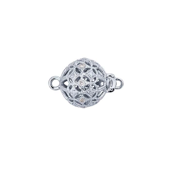 14K White Gold 15.1 x 10mm Diamond-Accented Filigree Bead Safety Clasp