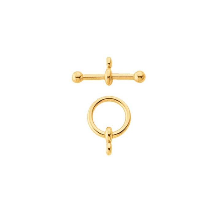 The toggle bar of this 14-karat yellow gold toggle clasp features ball ends and has a smooth finish that complements a variety of jewelry designs. A toggle clasp is a two-part clasp consisting of a ring and a bar. The bar end requires a short length of chain to allow it to slide lengthwise through the ring, then turn sideways so that it cannot fit back through the ring, effectively closing the jewelry piece. To open, the bar is simply pulled further through the ring just far enough to allow it to turn lengthwise again and slide back through the ring.