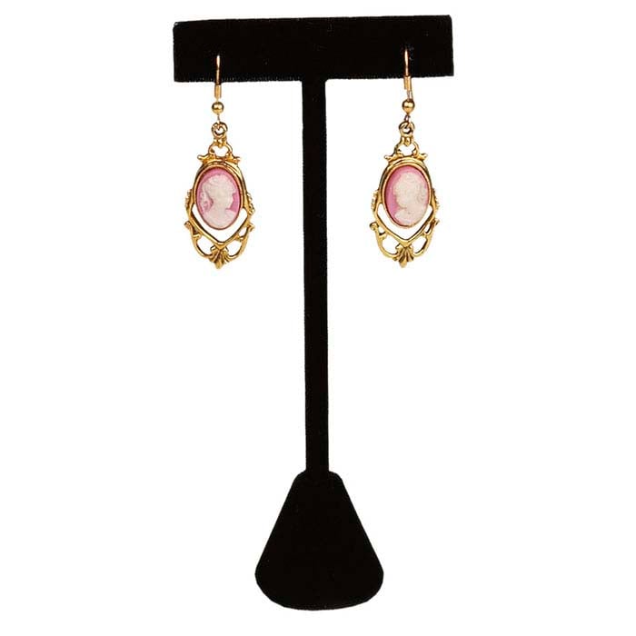 This T-stand earring display, in black velvet, provides a simple and elegant presentation for a single pair of earrings of any style, including hoops, up to 5" long. T-stands are ideal for displaying pairs of earrings so that they hang freely and naturally in any display, booth or showcase. The slender lines of the stand make it a great choice when display space is limited, or if you desire a spare, uncluttered look; the base is weighted to avoid tipping. The linen has a subtle texture that complements practically any style of jewelry. Plush black velvet linen covers a metal form.