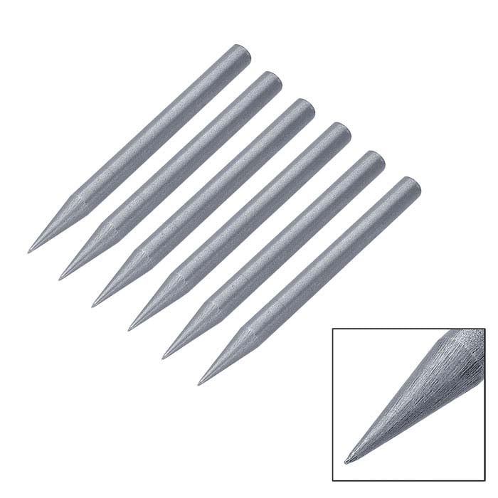 Get a head start on shaping custom tools that perfectly suit you task with this set of short thick steel points from GRS®. Easily complete the shaping to create special punches, hammer tools, bead-raising tools, prong pushers, stipple tools and more. Set includes six points; use with 1/8” QC tool holders. Made from hardened steel. Manufactured in the USA.