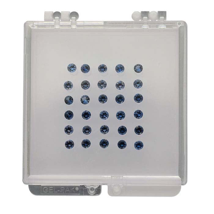 This AAA-grade round faceted London-blue topaz features precise facets on the crown, table and pavilion. Each gemstone has a consistent, saturated blue color and is the exact same size, making it easier add to your jewelry designs. One of the most popular topaz gemstones, London-blue topaz is a medium-to-deep grayish blue, sometimes with a green tinge—hues of the ocean depths; it is naturally flawless in most cases. This gem shows the superior cut, color saturation and active scintillation required to be classified as a top-quality AAA-grade gemstone. Topaz is one of the birthstones for November. This package includes 30 gemstones delivered in a protective gem jar. A hard, usually transparent aluminum silicate gem material, faceted topaz has a brilliance that rivals more expensive gemstones, making it an economical alternative to more costly gems. An "8" on the Mohs scale, topaz is tough and durable, ideal for all types of jewelry. Topaz forms in an orthorhombic structure with crystals that are usually prismatic. Pure topaz is colorless; impurities give the gemstone color. Gemstones can appear in a range of colors, with natural pink being the rarest. Most topaz colors are heat-treated or irradiated to enhance their color. In folklore, this gemstone is believed to dispel sadness and fear, to ward off poisons and to reverse infertility. Round-cut gemstones are highly popular and the most commonly available. Rio round gemstones are calibrated for size and hand inspected to ensure maximum attractiveness.
