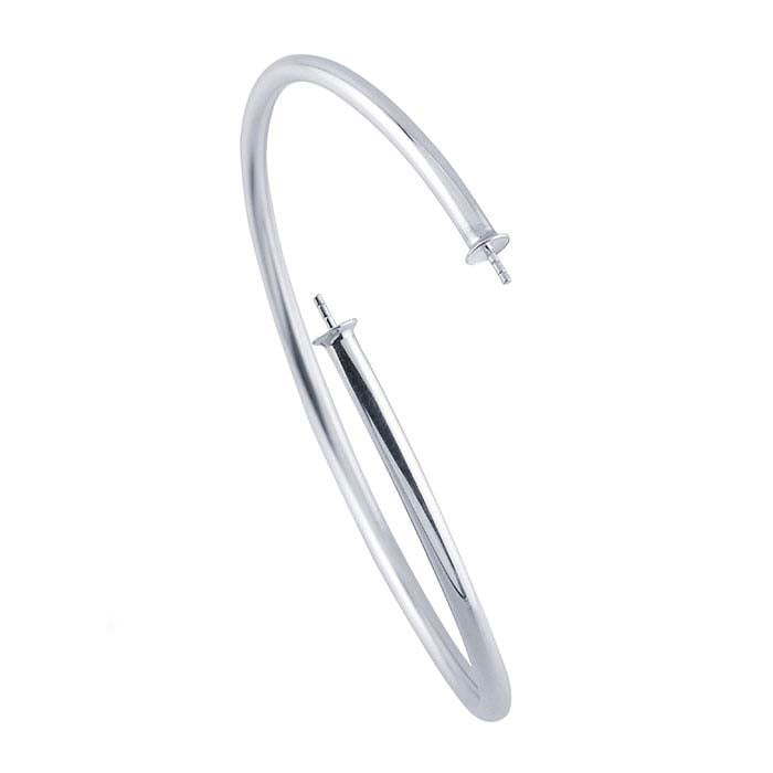 Designed to be lightweight and easy to put on and take off, this sterling silver flex tube bangle bracelet features a pearl cup and peg at each end, giving your customers the chance to create a one-of-a-kind look with their choice of pearl or bead. Set one 10–12mm half-drilled pearl or bead on each end, and secure the pearl or beads in place with jeweler's epoxy.