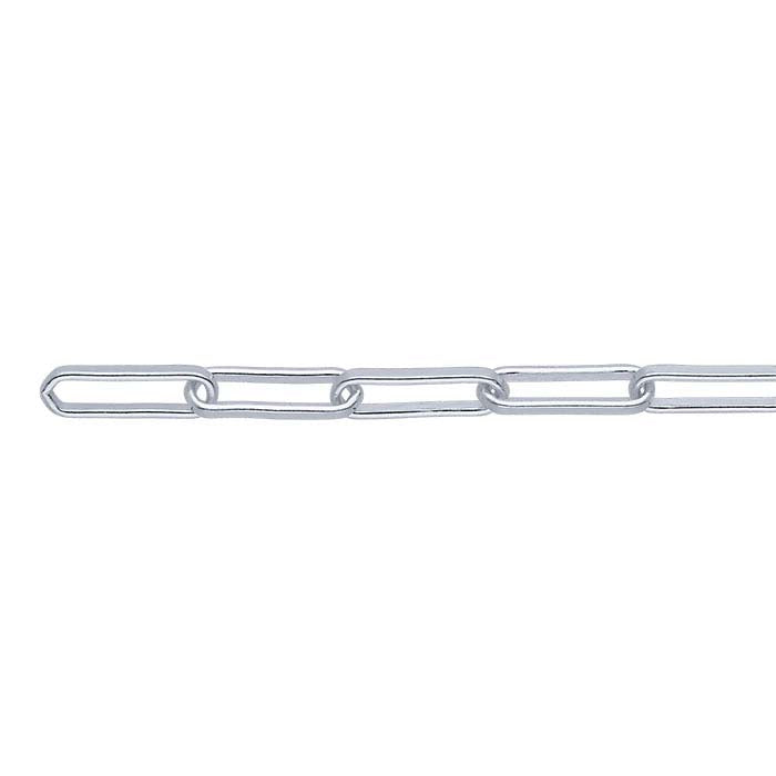 The long links on this sterling silver cable chain give it a streamlined look. Offer the chain as is, or use it as a foundation for your custom designs. This chain is plated with fine silver to ensure a bright white color and to help protect against tarnish.The most common chain style, cable chains are formed by simply connecting single links perpendicularly end to end. Links may be round, oval or other shapes.