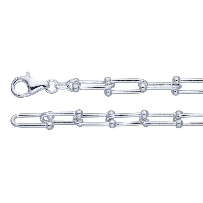 This sterling silver jax link chain features long links and a streamlined profile. It looks great worn alone or use it as a foundation for your custom designs.Jax link chains are a variation of cable chains and have ball accents on the links. Links are formed by simply connecting single links perpendicularly end to end.