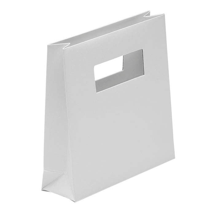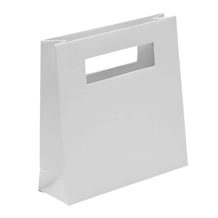 This eco-friendly mod tote features heavy-weight construction with fold-over tops and rectangle die-cut handles; ideal for jewelry on jewelry cards or in gift boxes, pouches or other gift items; totes provide an almost 'gift-wrapped' feel and can become a gift-within-a-gift. This bag is made from 30% recycled post-industrial material and can be recycled at the end of its service life. Hot stamp your shopping totes with your company name or logo to create effective marketing that will be seen by other shoppers, keeping you top-of-mind long after the jewelry sale.