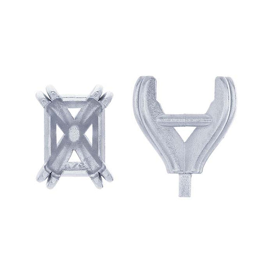 14K White Gold 8 x 6mm Emerald-Cut Basket 4-Prong Setting with Peg