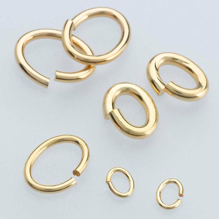 A perfect complement to gold-filled designs this 14/20 yellow gold-filled oval jump is an ideal connector for drops, dangles, charms or clasps. Jump rings are made from coiled wire and have an opening that allows you to insert it through a ring, loop or hole on another finding. A staple of the jewelry-making industry, these rings are ideal as attach rings for component designs, as strand or chain ends, as links for creating chain. Solder rings closed to ensure that connections are permanently secure.