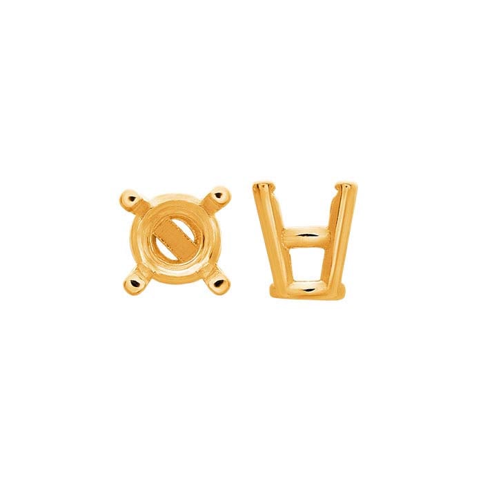 14K Yellow Gold 2.5mm Round Pre-Notched Basket 4-Prong Setting with Bar