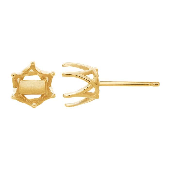 This 14-karat yellow gold post earring mounting features a swirl heart design at the base and holds one 4mm (1/4-ct., approx.) faceted gemstone in a 6-prong setting. The 6-prong setting offers extra security for large or high-value gemstones. Cut a seat in the prongs to accommodate your stone, then burnish the prongs over the stone to secure it in place. The friction post features a groove that helps provide the most secure and comfortable fit; post earrings require an ear nut to keep the post in place.