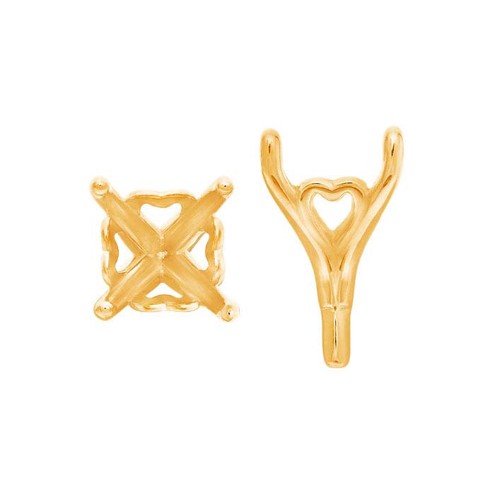 This 18-karat yellow gold setting offers a heart scroll design and holds one 6.5mm (1-ct., approx.) round faceted gemstone. A classic choice, the 4-prong setting supports the gemstone on four sides. Use peg settings in ring shanks with a hole; they allow you to be more accurate, clean and quick when positioning the setting on the shank. If desired, clip the peg to use the setting with other ring shanks or components.This setting is manufactured to exacting quality standards in our solar-powered facility.